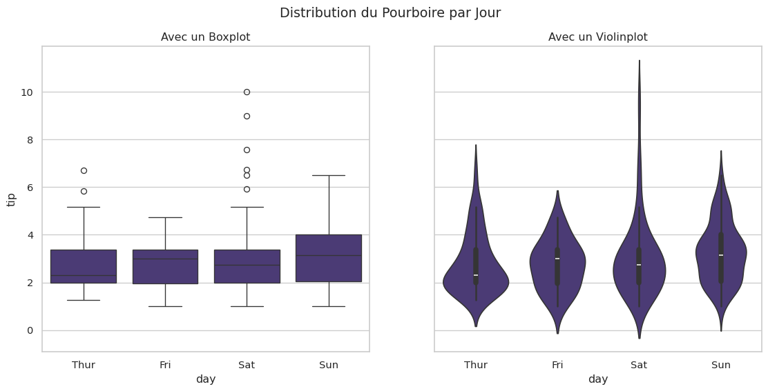 Pour une comparaison plus riche, boxplot et violinplot sont parfaits.
