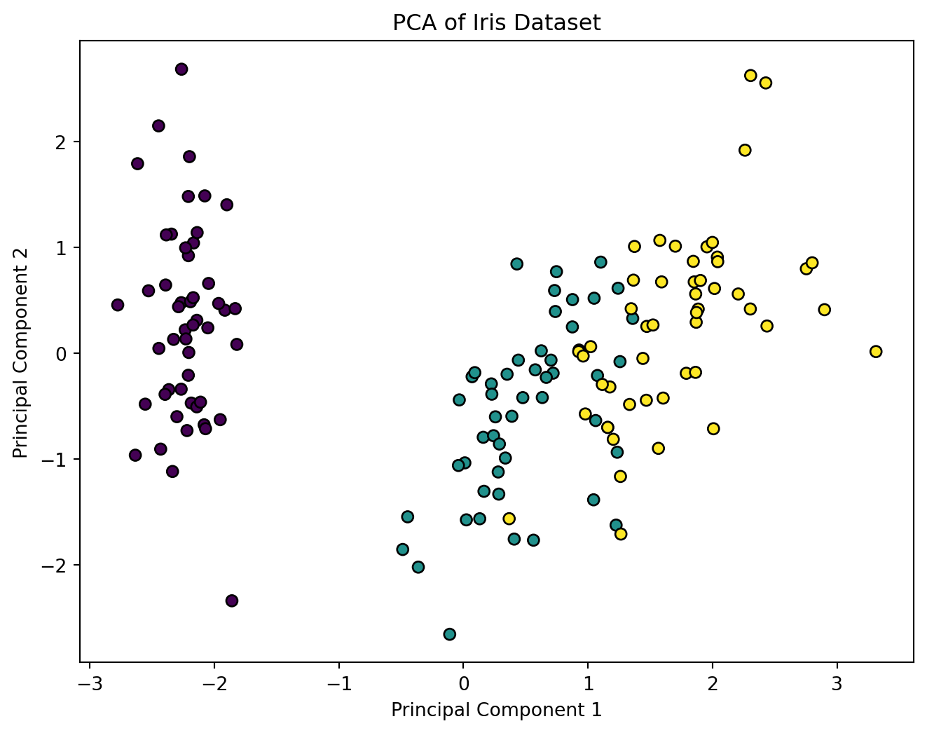 Let \(\mathbf{V}_k \in \mathbb{R}^{p \times k}\) be the matrix containing the top \(k\) eigenvectors (principal components). The reduced data matrix \(\mathbf{X}_{\text{proj}} \in \mathbb{R}^{n \times k}\) is obtained by projecting the centered data \(\mathbf{X}_c\) onto \(\mathbf{V}_k\):